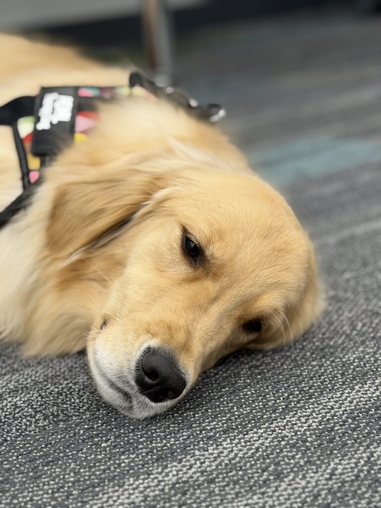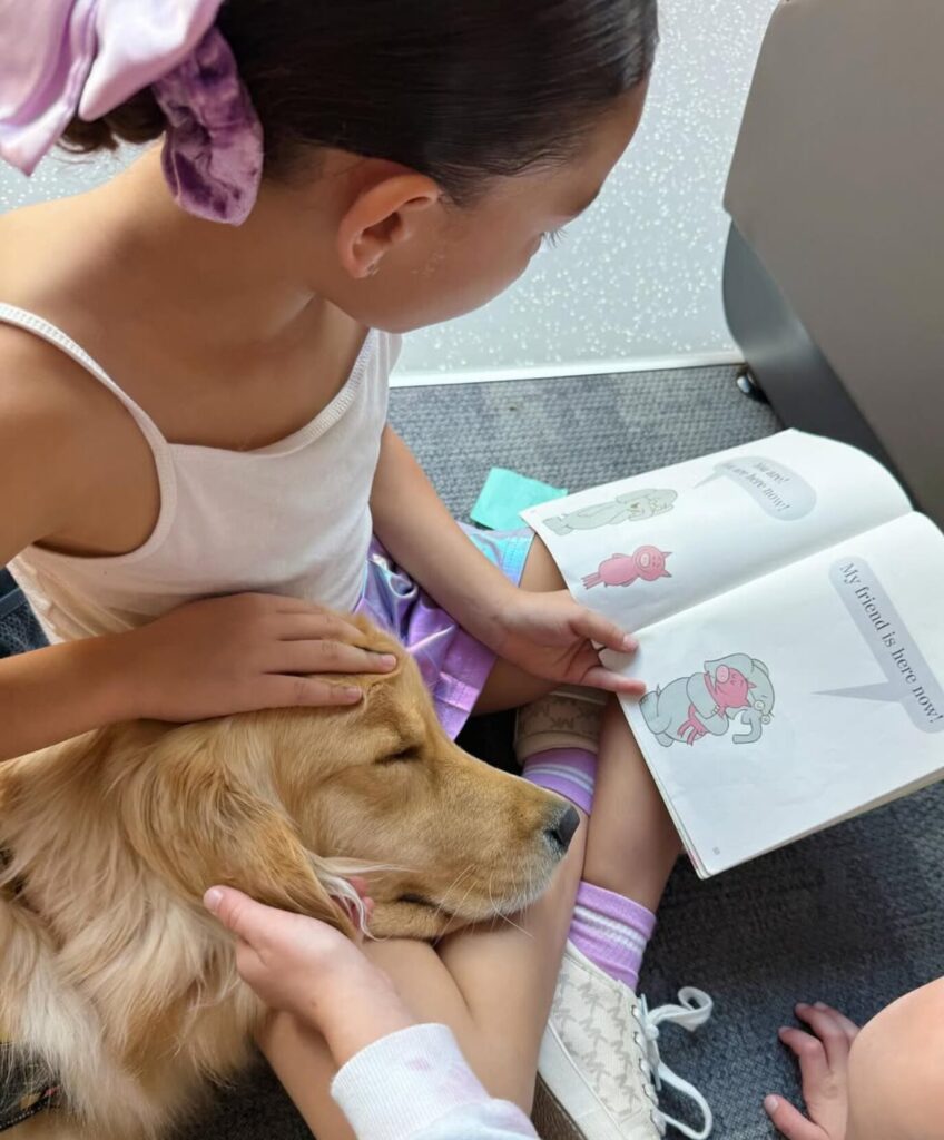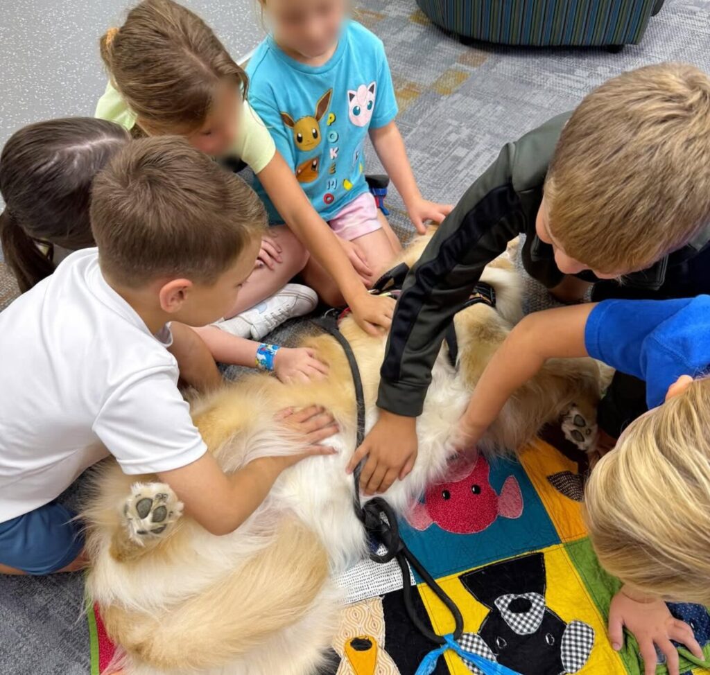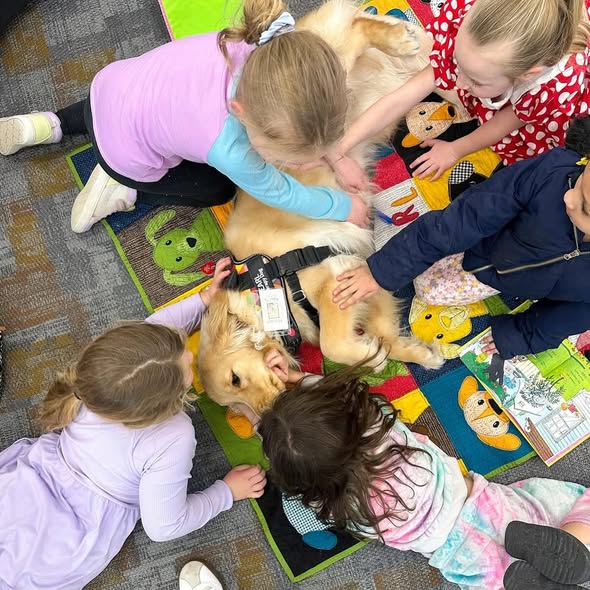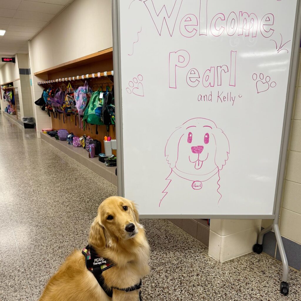 Pearl regularly visits classrooms at the request of teachers, providing students with a calming and supportive presence. Whether it’s helping students relax, refocus, or simply enjoy a quiet moment, Pearl has a wonderful way of connecting with kids and making school feel a little brighter.
